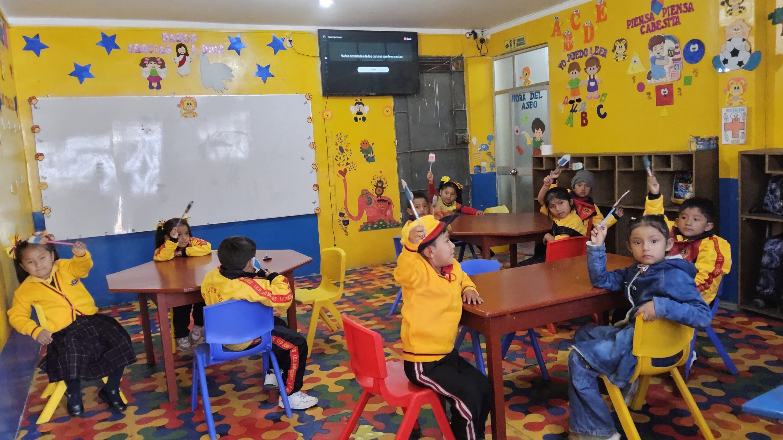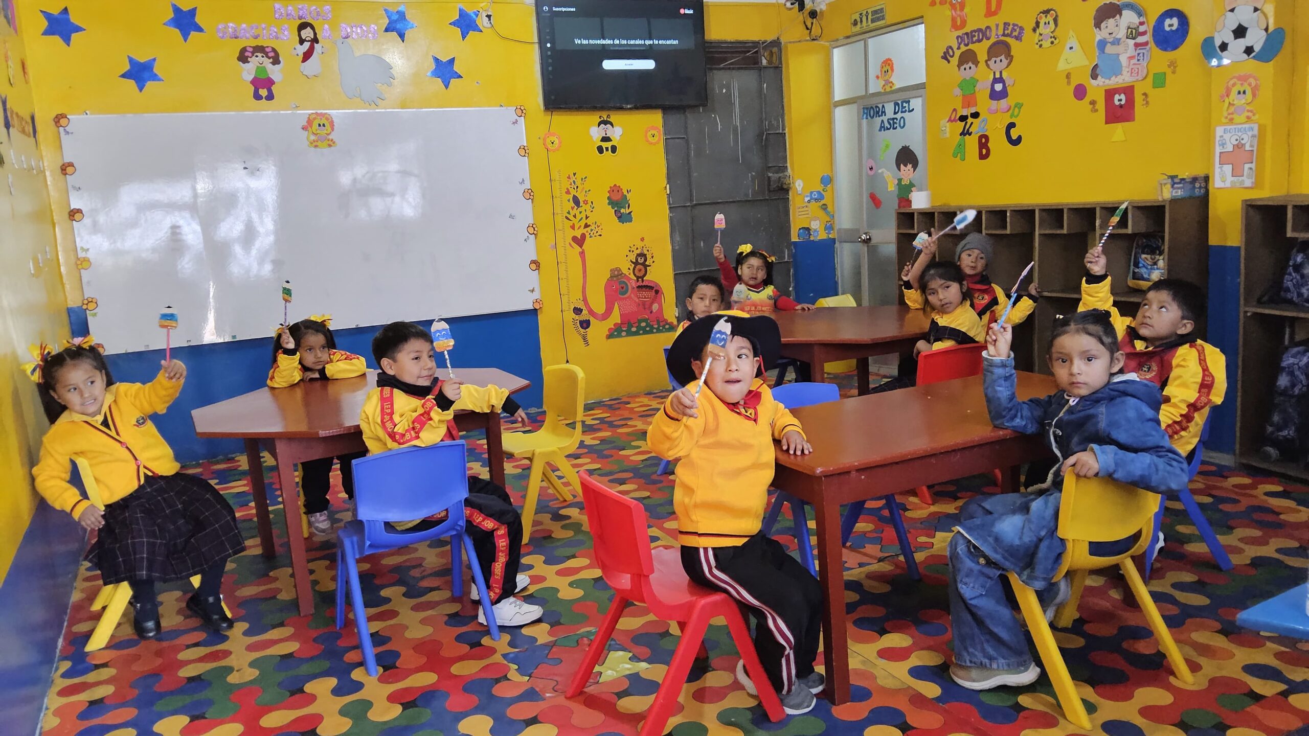 Nuestras profesoras de inicial planifican actividades lúdicas, motivadoras e interactivas, utilizando estrategias como canciones, juegos, cuentos y rutinas diarias en inglés para fomentar la exposición constante al idioma. Además, utilizan recursos visuales y materiales manipulativos para facilitar la comprensión y el aprendizaje a través de la experiencia sensorial.